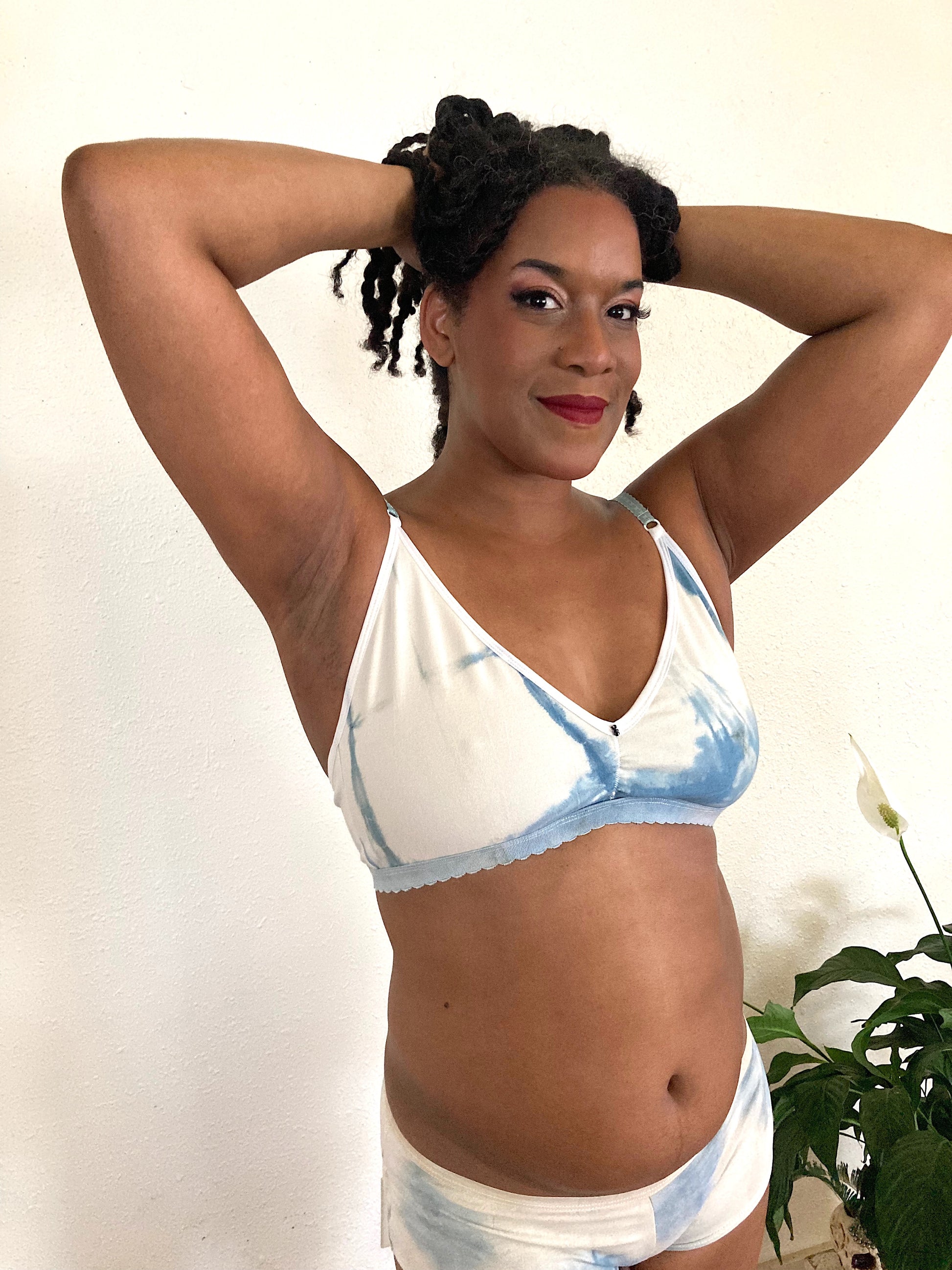 The Betty bra was originally made in 2011 but I never really had an option for larger cup sizes. So this bra was adapted from that style. This bra is a comfy fit if you have larger breasts. I would say DD comfortably. I recommend coming in to try it on if you question the fit. There have been several bodies fitted to the sample bra and they all had different cup sizes and under bust measurements.
