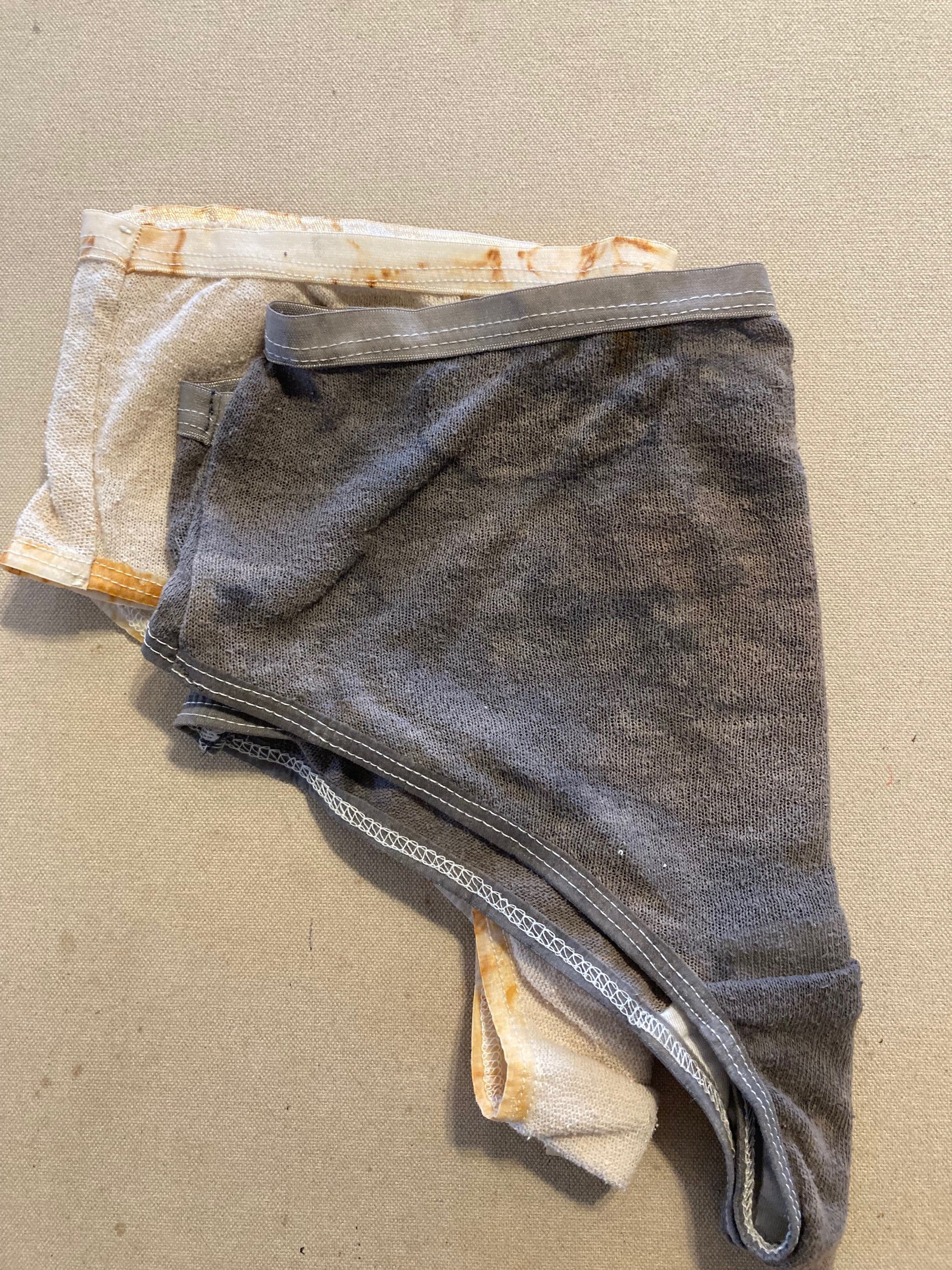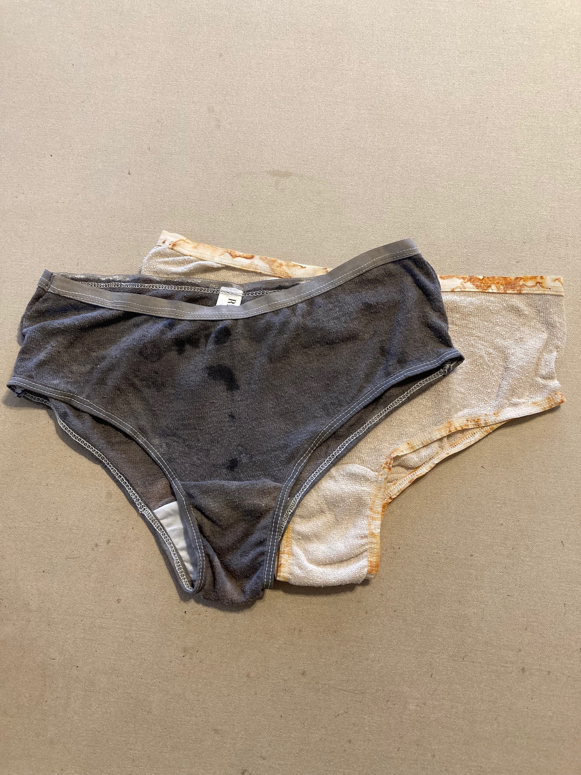 Unfiltered Charcoal - not your average charcoal. Dyed with tannins and iron and various processes to create texture and variation. The elastic is hand dyed a charcoal color.