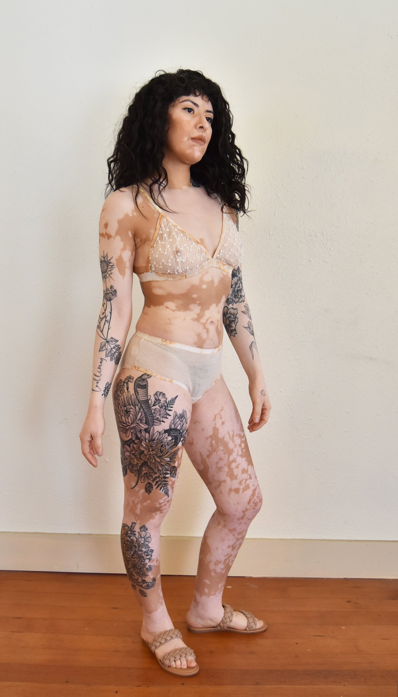 Natural - undyed silk with rust printed elastic details