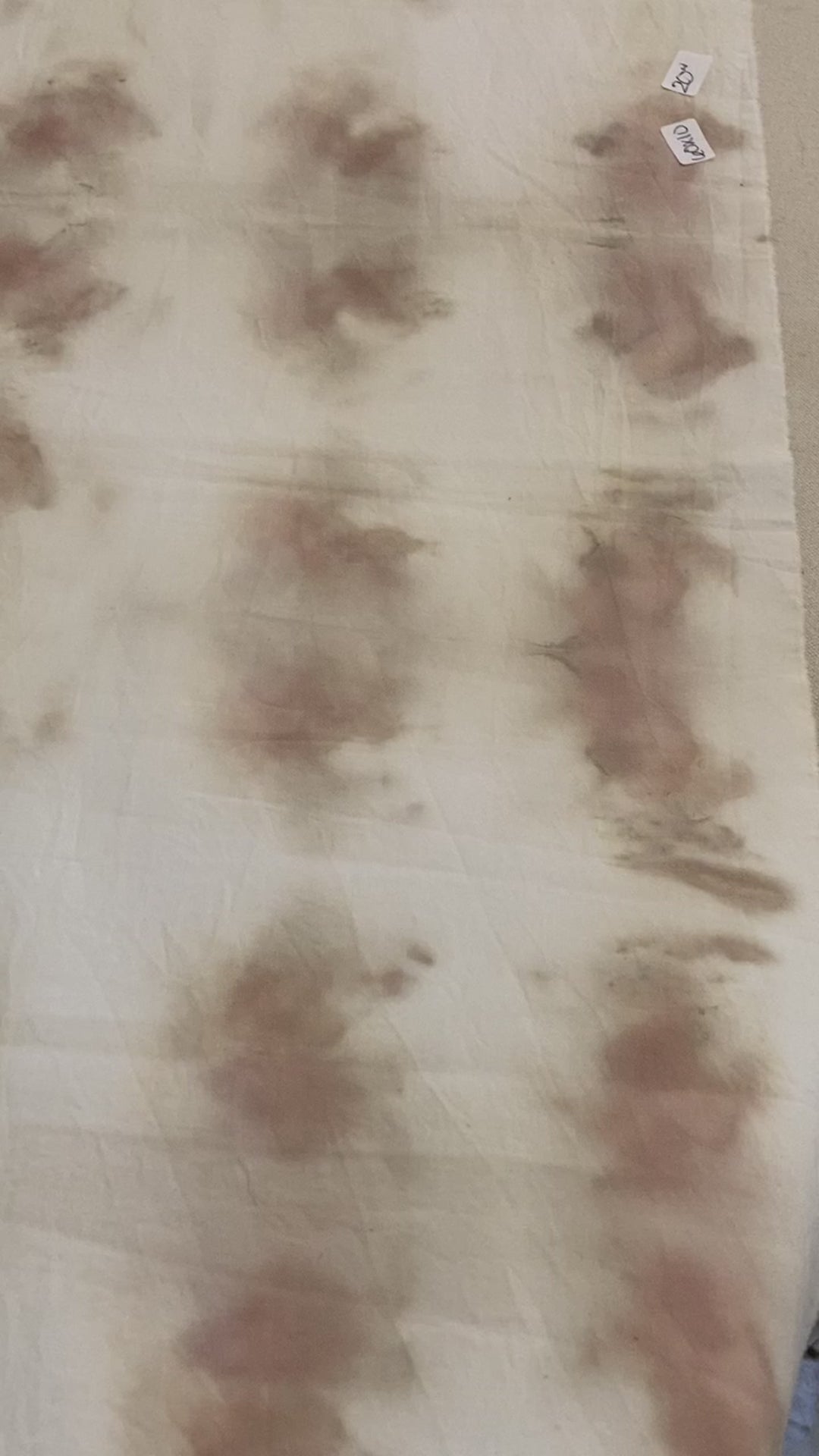 This organic cotton poplin remnant was made with composted hollyhock to create a pattern that is on the edges of the fabric width. (Please see video for full view) What remains is a 60x10 inch piece. The size of the hollyhock print is about 22" on each side which leaves a 15" center.