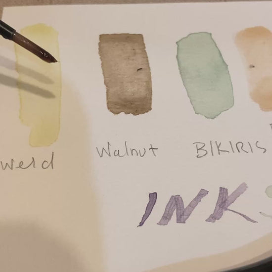 * Black Iris- Garden beauty, the bearded black iris gives the most delicate blue/ green. Harvest these in spring 2025 and just made a very small batch. I recommend storing the ink in fridge between painting and creating for the longest shelve life. I noticed my first bottle changed color after about a month sitting out on my ink tray.