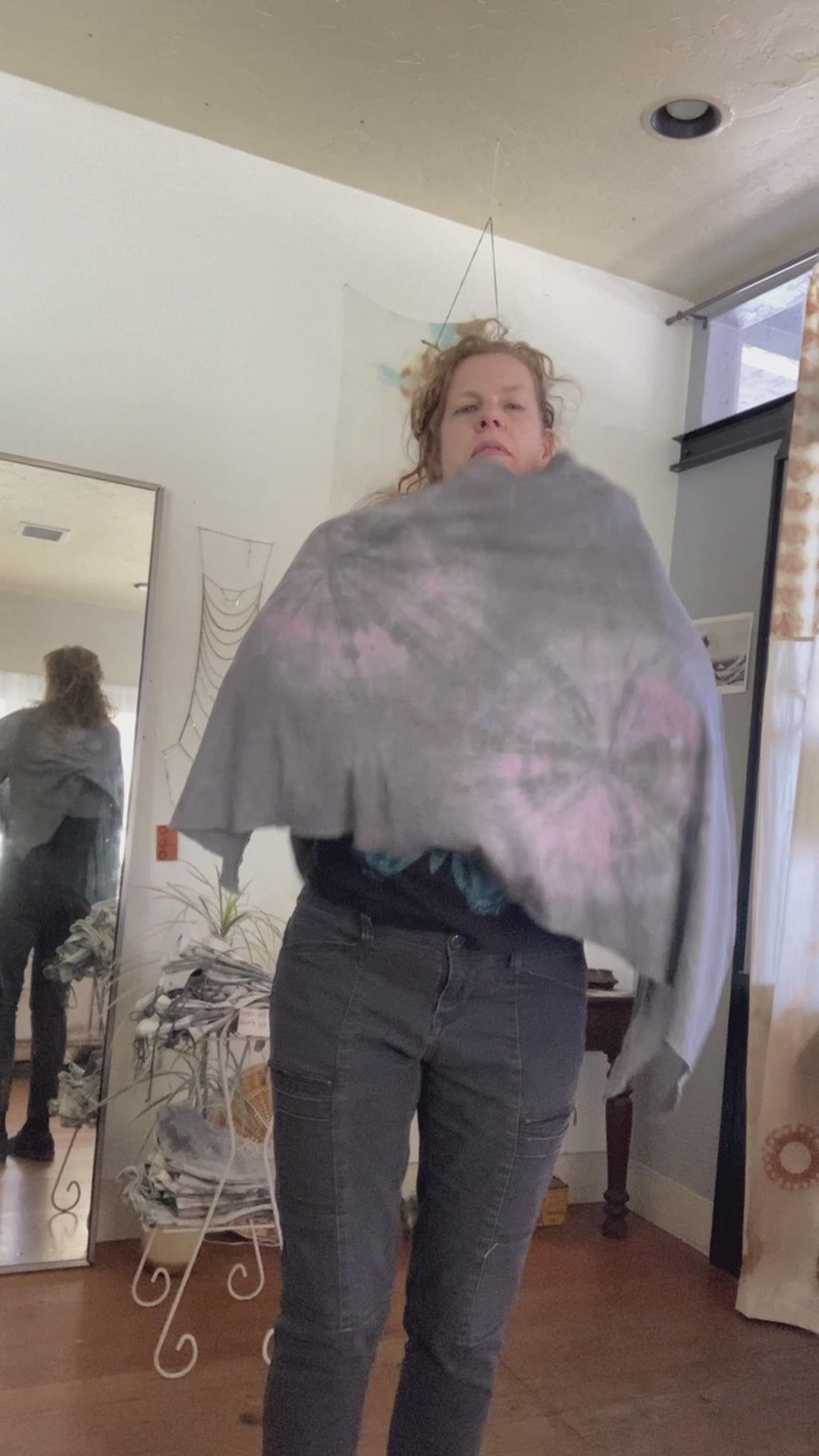 These shawls are cozy and stylish. Made with a cotton/ hemp knit and dyed with various techniques using plants and minerals.