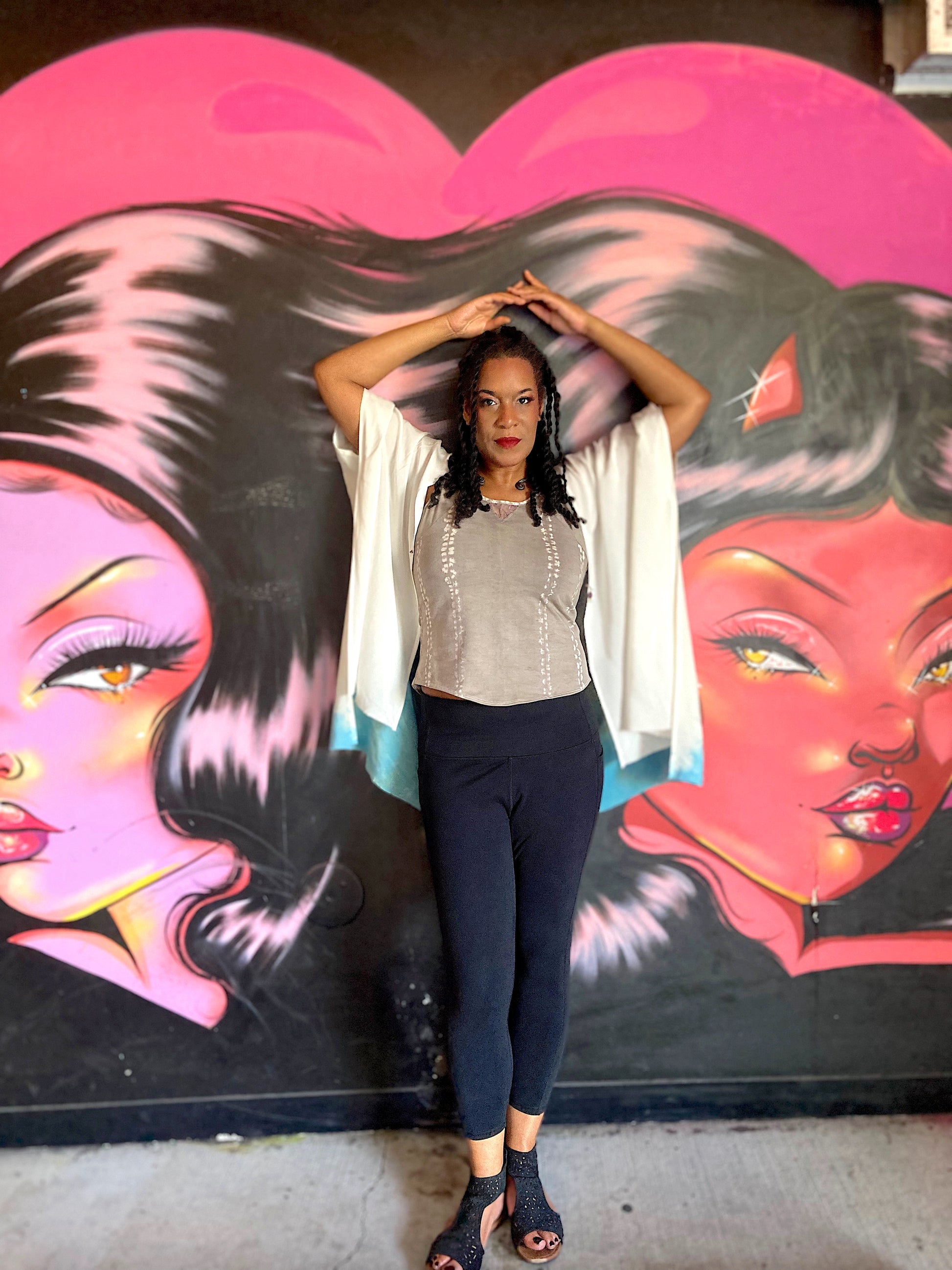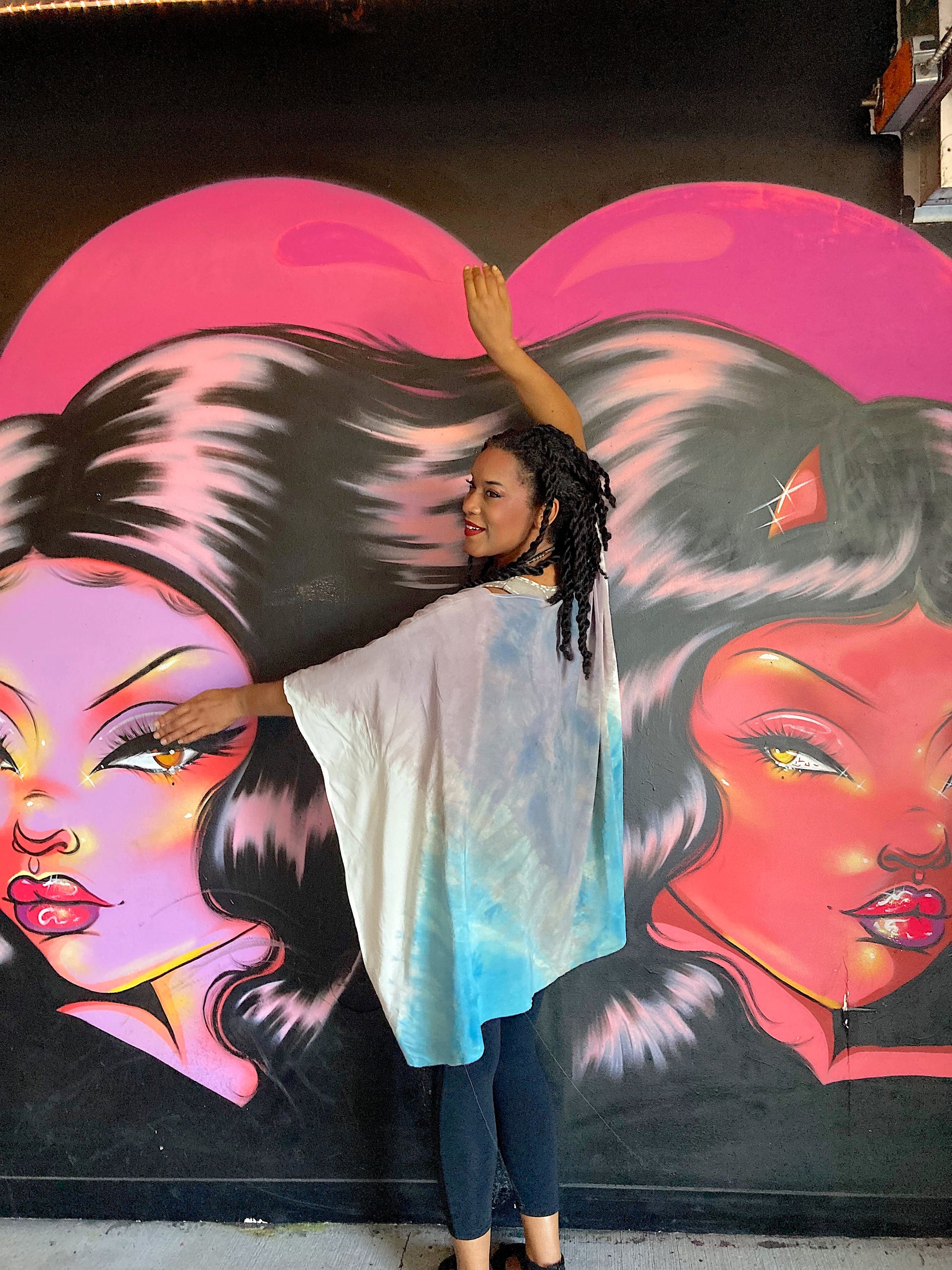 Triangle Shawl is part of the 2020 capsule collection - The Magic Within. This raw silk shawl / poncho, is made to be worn by any sexual orientation. There is one size which is aprox 50 x 58 inches. It was dyed with natural colors from logwood, and indigo. The pattern was made with a stitched shibori method.