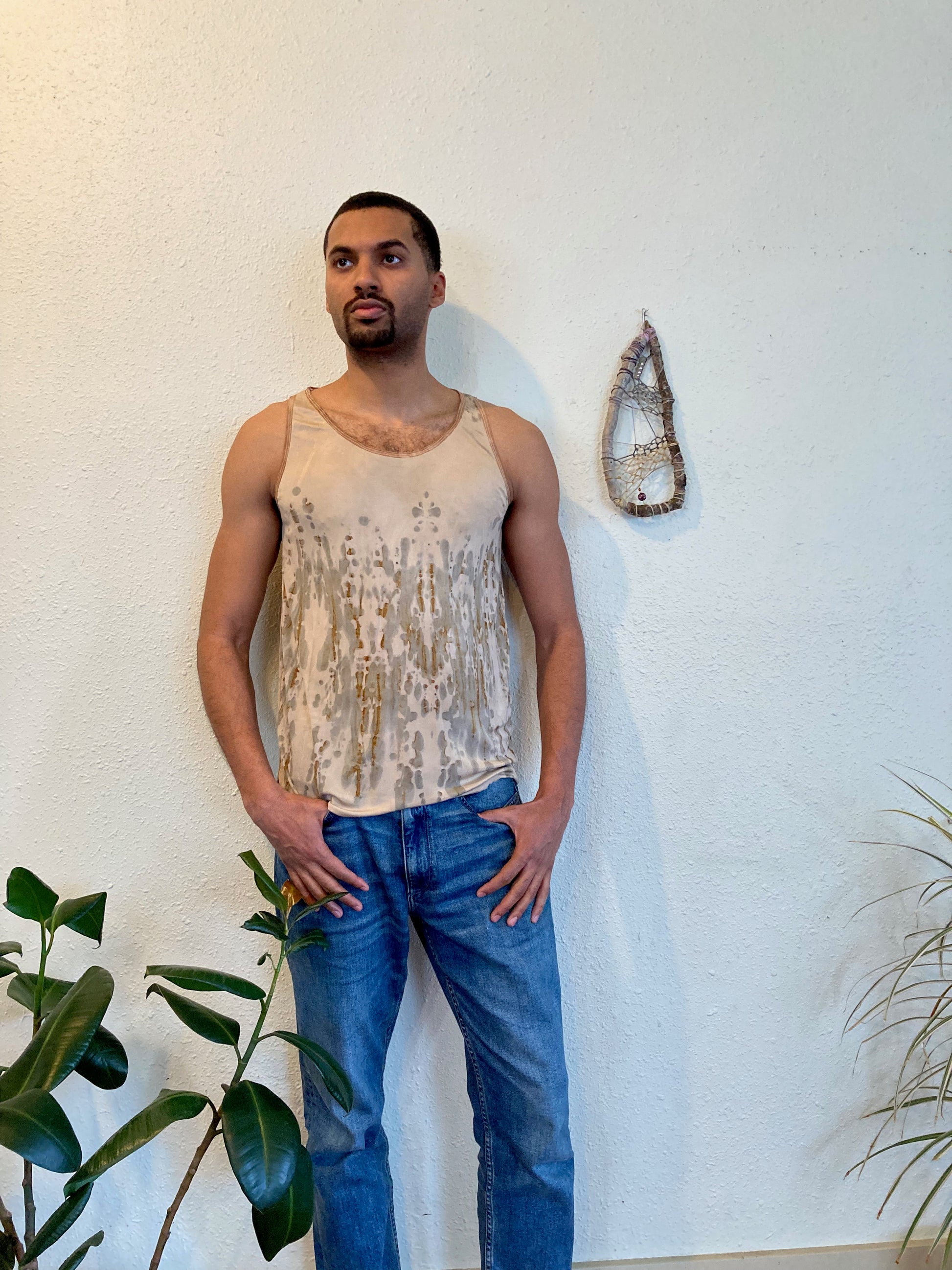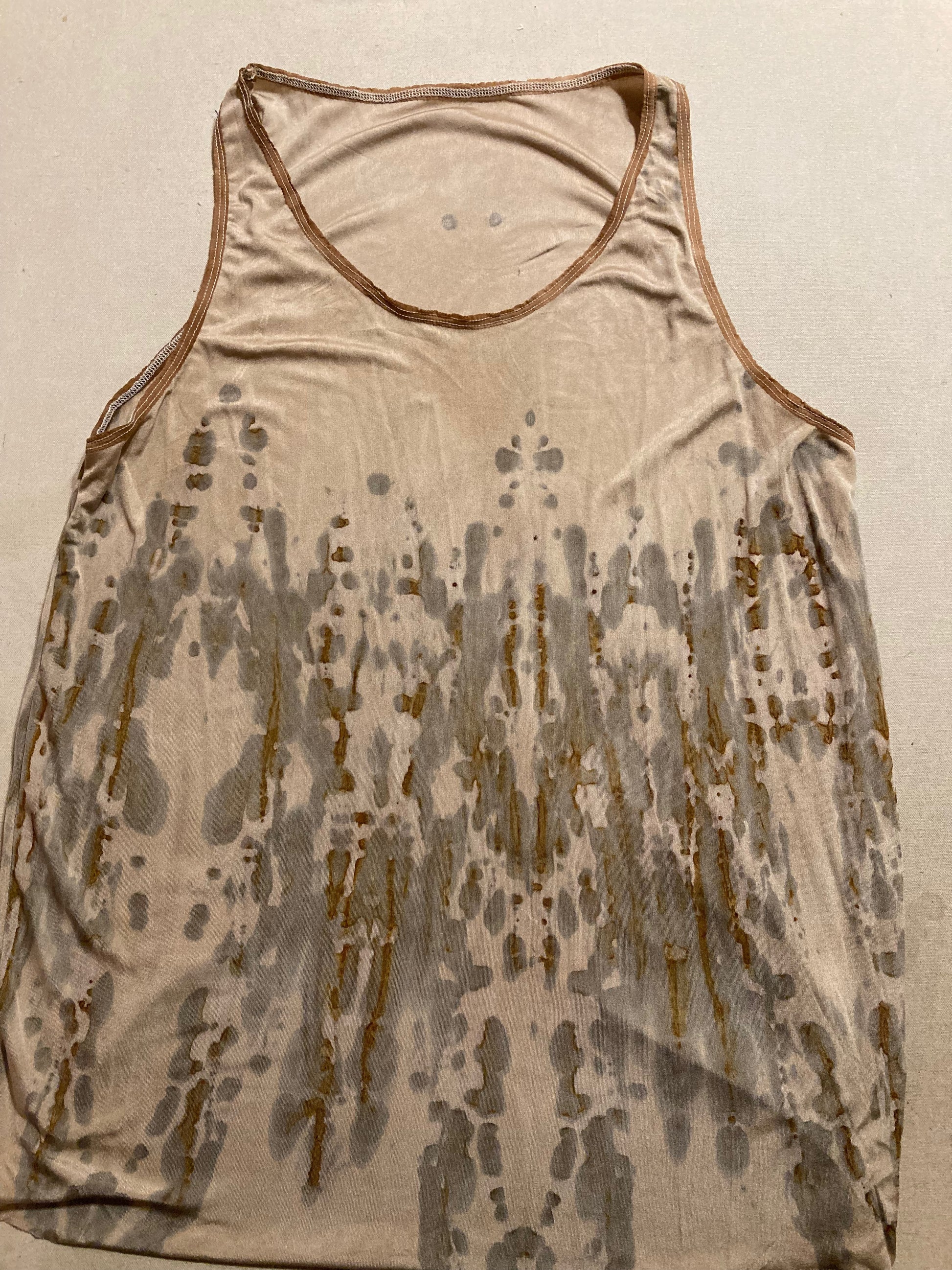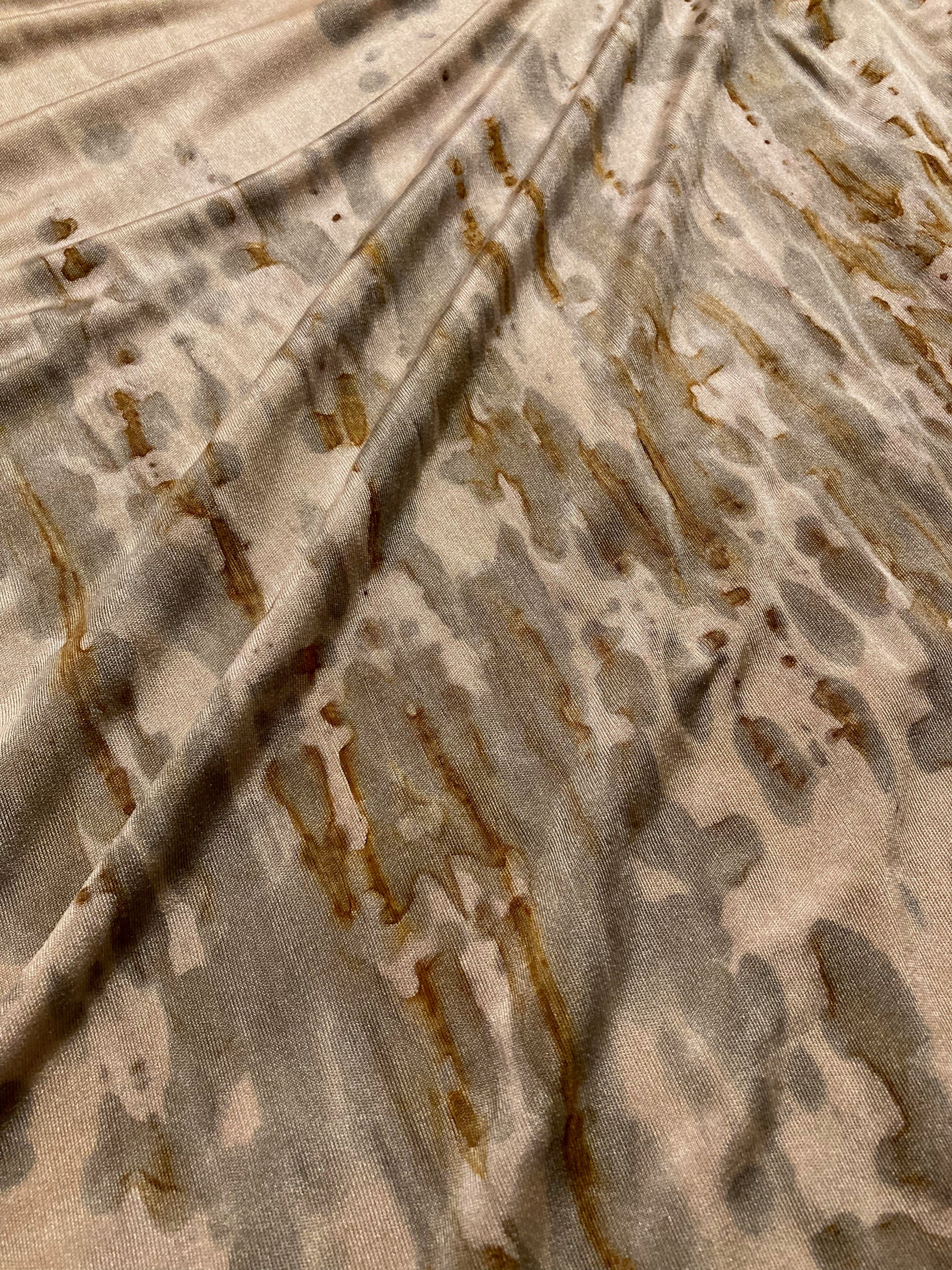 This luscious silk knit has been dyed with black walnut and rust.  Although you see a male wearing it; this is totally made for any sexual orientation.